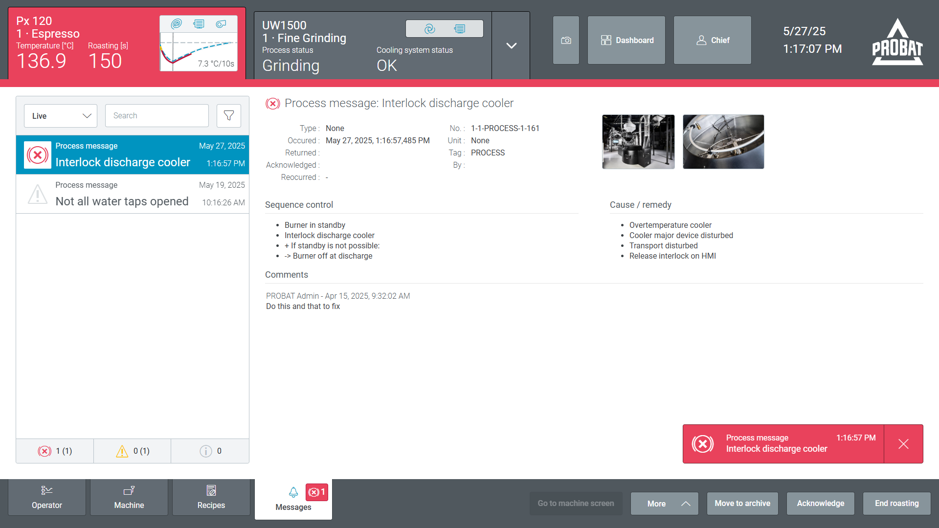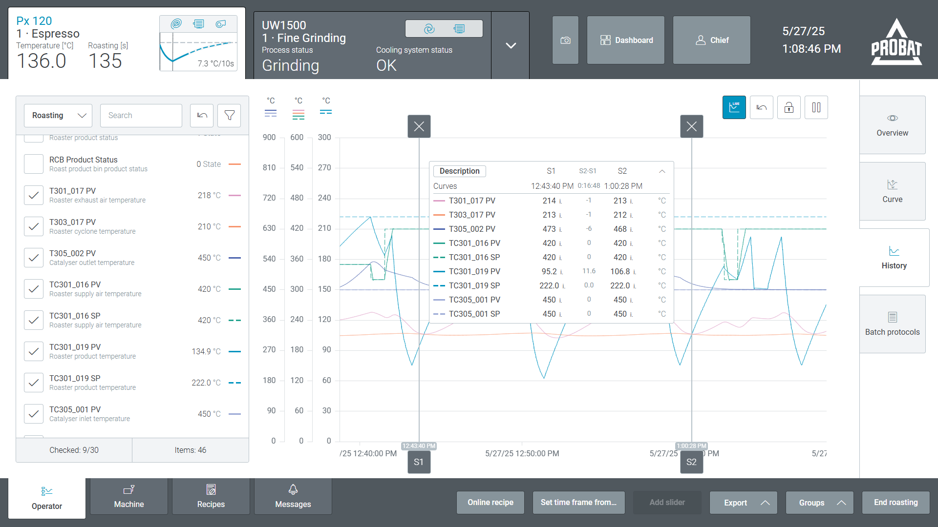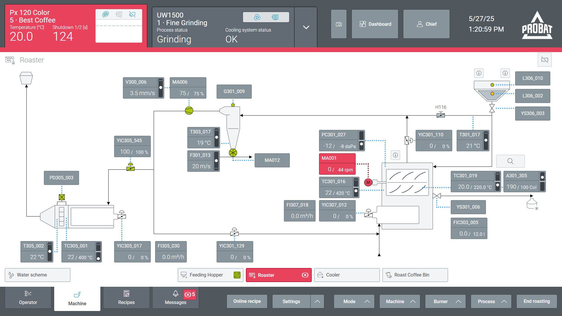 PROBAT 기계 제어 솔루션은 플랜트 시스템에 원활하게 통합되어 빠르고 안전한 데이터 교환을 보장함으로써 운영 효율성을 향상시킵니다. 직관적인 상호작용을 위해 설계된 PROBAT 기계 제어 솔루션은 반응성이 뛰어나고 사용자 정의 가능한 인터페이스를 통해 작업자가 커피 및 식품 가공 기계를 쉽고 안전하게 모니터링하고 제어할 수 있도록 지원합니다. 생산성, 보안 및 사용자 경험을 최적화한 PROBAT 기계 제어는 사용자가 산업용 소프트웨어와 상호작용하는 방식을 혁신합니다.