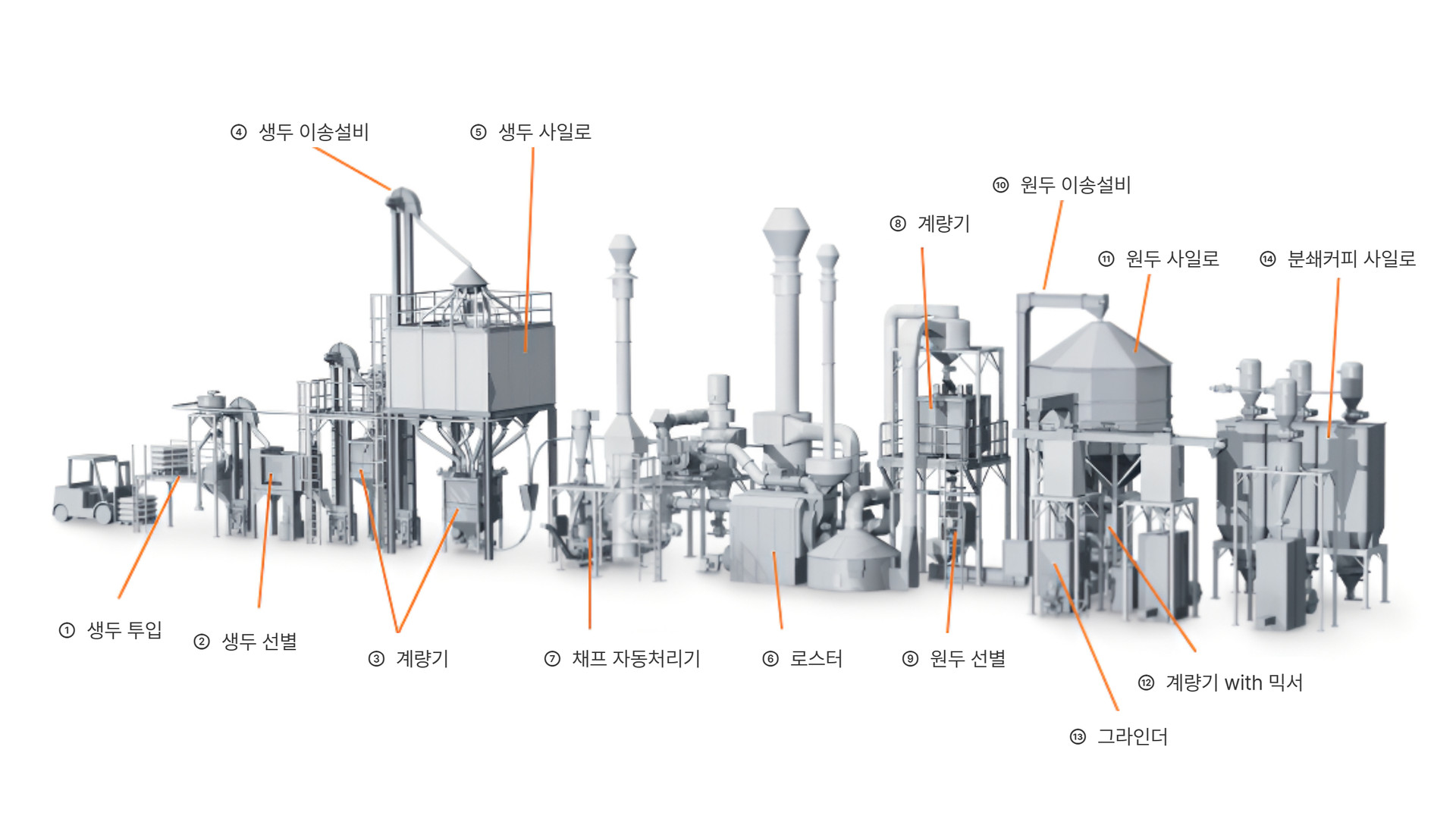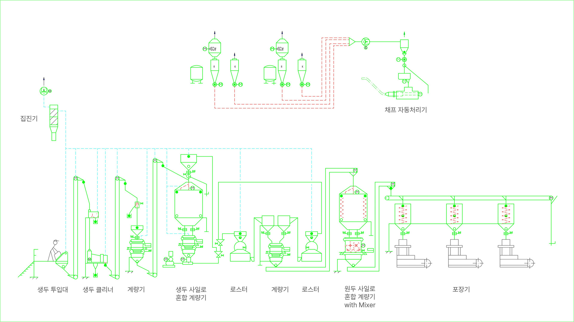 로스팅 기계뿐만 아니라 PROBAT는 생두 투입부터 원두/분쇄커피 보관에 이르기까지 포장기를 제외한 모든 솔루션을 제공하며, 모든 공장 구성 요소 간의 원활한 통합과 조화를 보장합니다. PROBAT의 전문성은 에너지 효율성, 공정 최적화, 안전 전략, 배출 가스 제어, 소음 저감, 종합적인 공장 레이아웃 설계에 이르기까지 모든 단계를 아우릅니다. 혁신을 동력으로 삼고 항상 고객의 요구에 집중함으로써, PROBAT은 고객이 지속적인 경쟁 우위를 유지할 수 있도록 지원합니다.